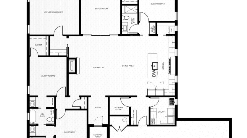 Tiled Tub/Shower Combination in Guest Bathrooms